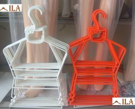 Móc nhựa treo bộ trẻ em cổ xoay loại này tiện lợi và linh hoạt hơn, nếu Bạn đứng trong shop muốn xem chiếc áo phí bên trong có bị lỗi không, màu có chuẩn như vậy không, chỉ cần xoay ngược lại là ok, không phải mất công nhấc lên hoặc đi vào bên trong thì mới xem được nhưng nhược điểm của mẫu móc bộ này là rất hay bị gãy cổ chỗ xoay. Khi xoay qua xoay lại, hoặc rơi xuống đất thì sẽ bị gãy, làm hỏng. Mẫu này cũng có 3 màu: trắng đục, trắng trong và màu cam.